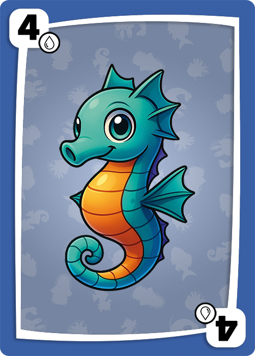 Cartas inspiradas en el mar y la fauna marina del Mar Menor: caballitos de mar, peces y otros tesoros que se relacionan con el mar.